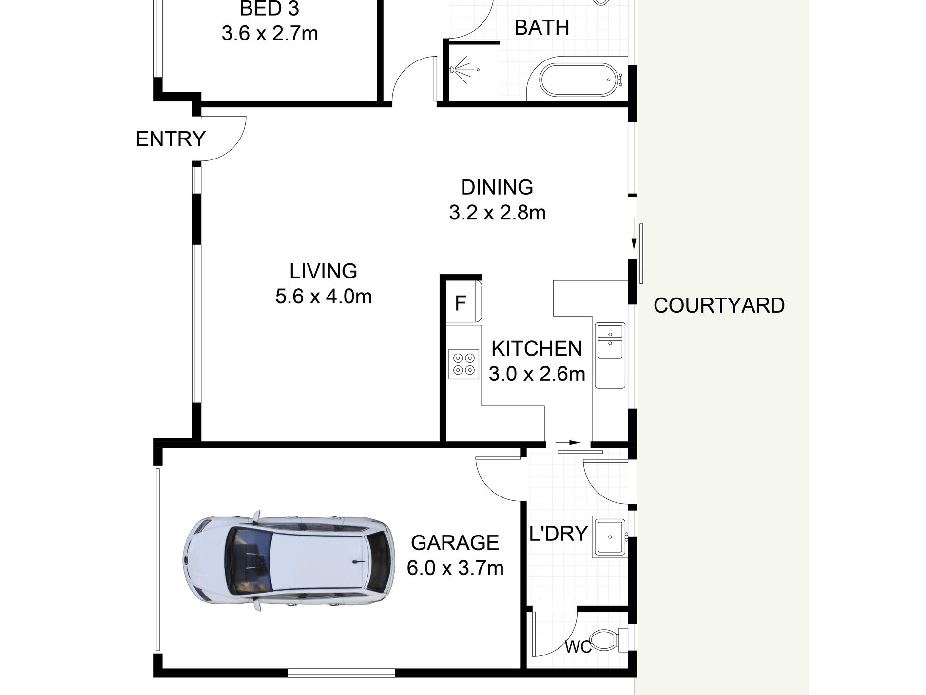 - Three generous bedrooms, two complete with built-in wardrobes