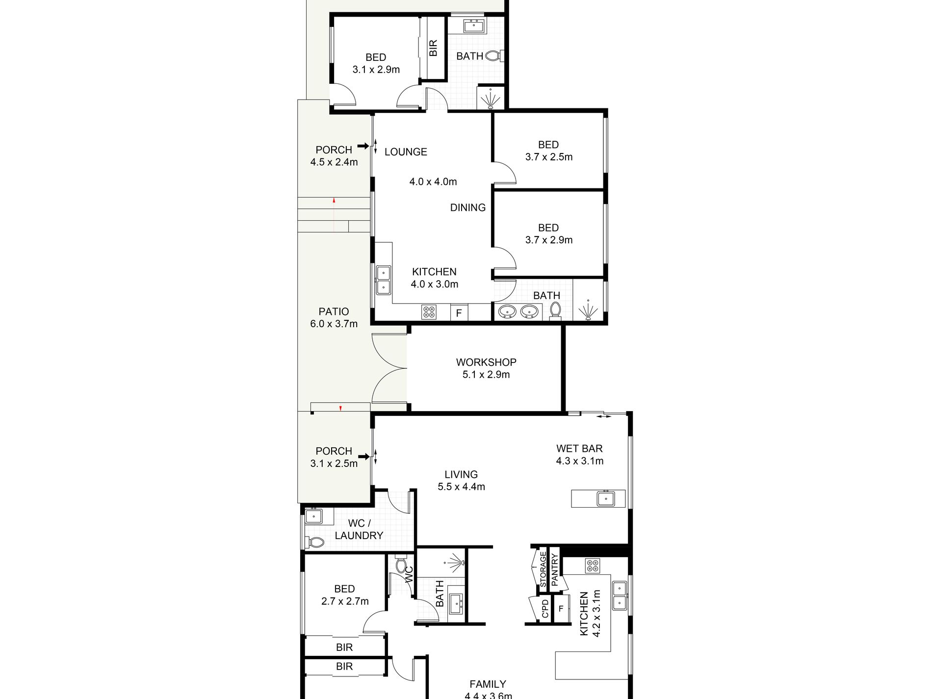 - Five spacious bedrooms all fitted with ceiling fans and three well-appointed bathrooms